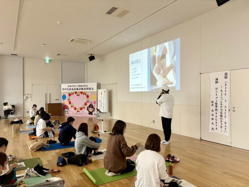 身体のケアのコツや身体の仕組み、応急処置等について講義させていただきました